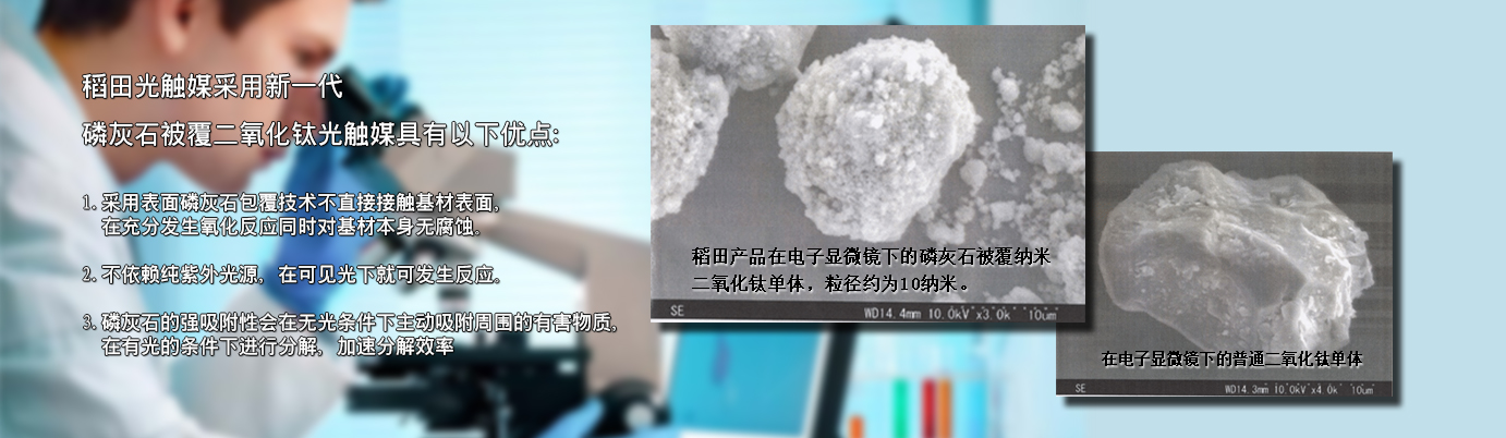 在認(rèn)識(shí)【光觸媒】之前,要先了解什么是【觸媒】。觸媒是日語(yǔ),翻譯成中文叫催化劑。催化劑是能在化學(xué)反應(yīng)中加速反應(yīng)速率,而本身在反應(yīng)前后并不發(fā)生變化的物質(zhì)。光觸媒是一種以納米級(jí)二氧化鈦為代表的具有光催化功能的光半導(dǎo)體材料的總稱(chēng)。它涂布于基材表面,在光線的作用下,產(chǎn)生強(qiáng)烈催化降解功能:能有效地降解空氣中有毒有害氣體;能有效殺滅多種細(xì)菌,并能將細(xì)菌或真菌釋放出的毒素分解及無(wú)害化處理;同時(shí)還具備除臭、抗污、凈化空氣等功能。 稻田光觸媒采用【磷灰石被覆納米二氧化鈦分子結(jié)構(gòu)】,具有吸附、分解、去除、無(wú)毒化的特質(zhì)。表面磷灰石包覆技術(shù)不直接接觸基材表面,在充分發(fā)生氧化反應(yīng)的同時(shí)對(duì)基材本身無(wú)腐蝕。其中的【磷灰石】成分,具有強(qiáng)大的吸附能力,可以隨時(shí)吸附空氣中的異味源、細(xì)菌、病毒等有害物質(zhì),再交由【二氧化鈦】在光源下進(jìn)行分解反應(yīng),因此能夠24小時(shí)吸附、分解